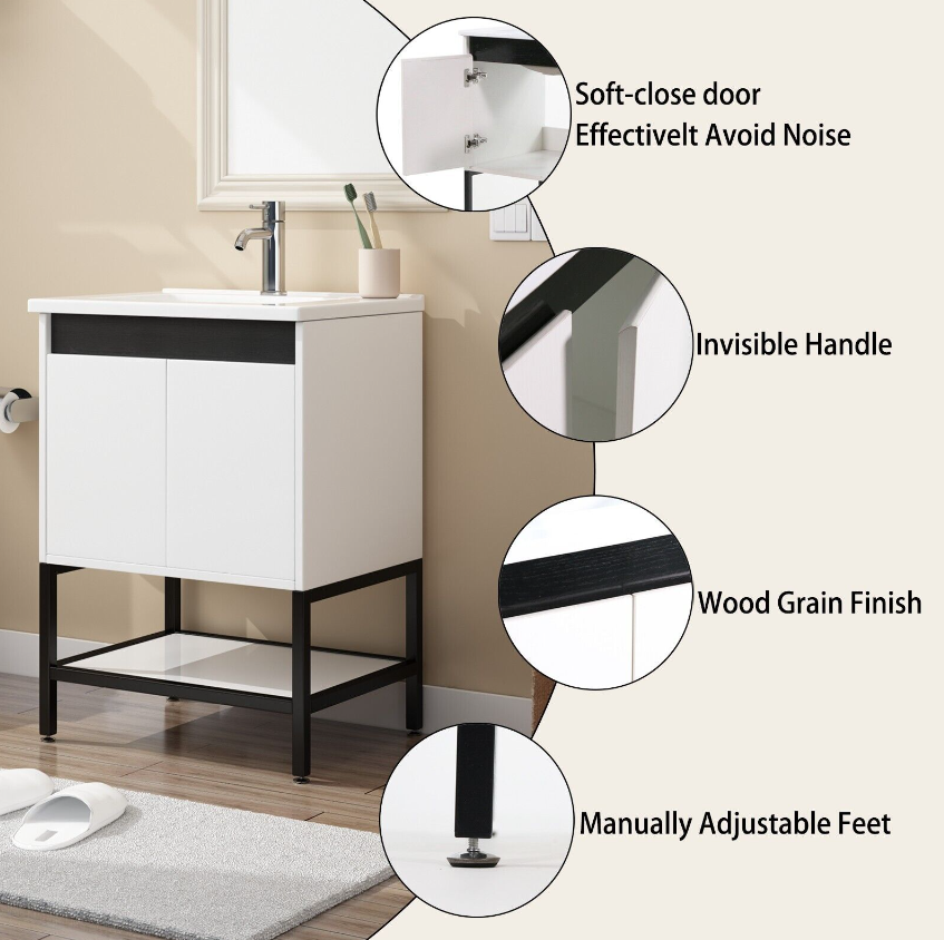 The Wonline 24" Small Bathroom Vanity will infuse your bathroom with a calming, light and concise feel.