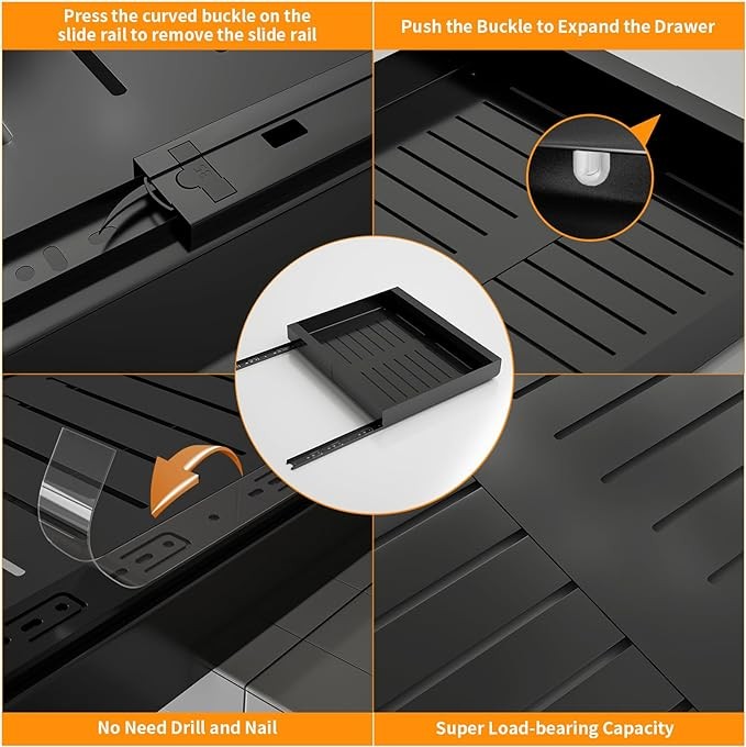 • 【High Quality Material】Our sliding cabinet organizer pull-out shelves are made of high-quality carbon steel with a black powder-treated surface. Theslide out pantry shelves of this sliding cabinet organizer will provide strong load-bearing capacity to easily accommodate and organize loose items, suitable for holding heavy pots and pans.