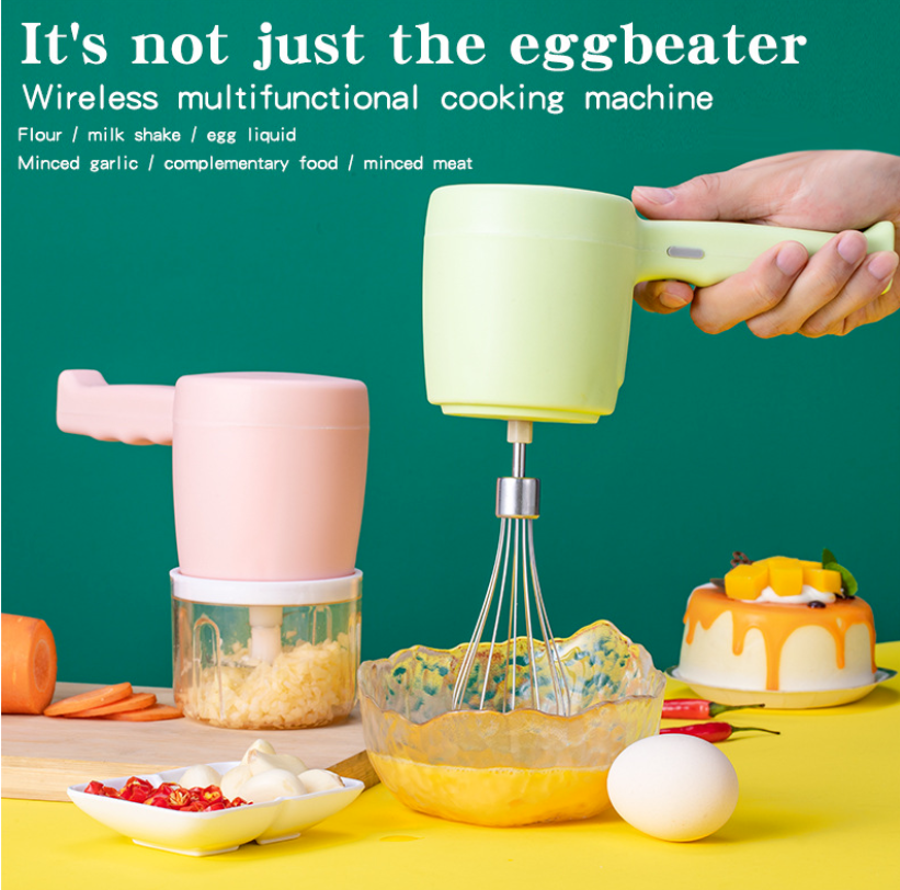 3-in-1 Electric Wireless Chopper - Handheld Food Processor - Egg Beater Blender