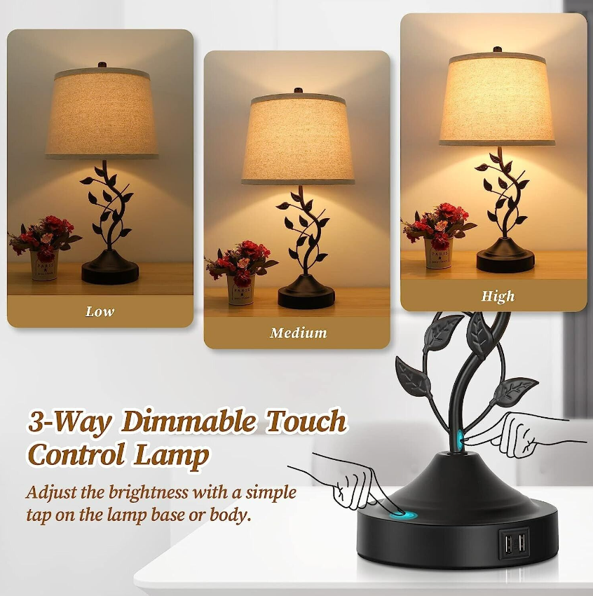 • ❤【Dimmable Touch Table Lamps for Bedroom】Boasting the advanced dimming technology, these traditional table lamps offer 3 levels of brightness to meet your lighting needs at different times or occasions. With built-in touch sensor, you can turn on/off the light and adjust brightness by a simple tap on the metal lamp base or lamp body. The noise-free touch control design and convenient dimming function make them an excellent choice of bedroom lamps.