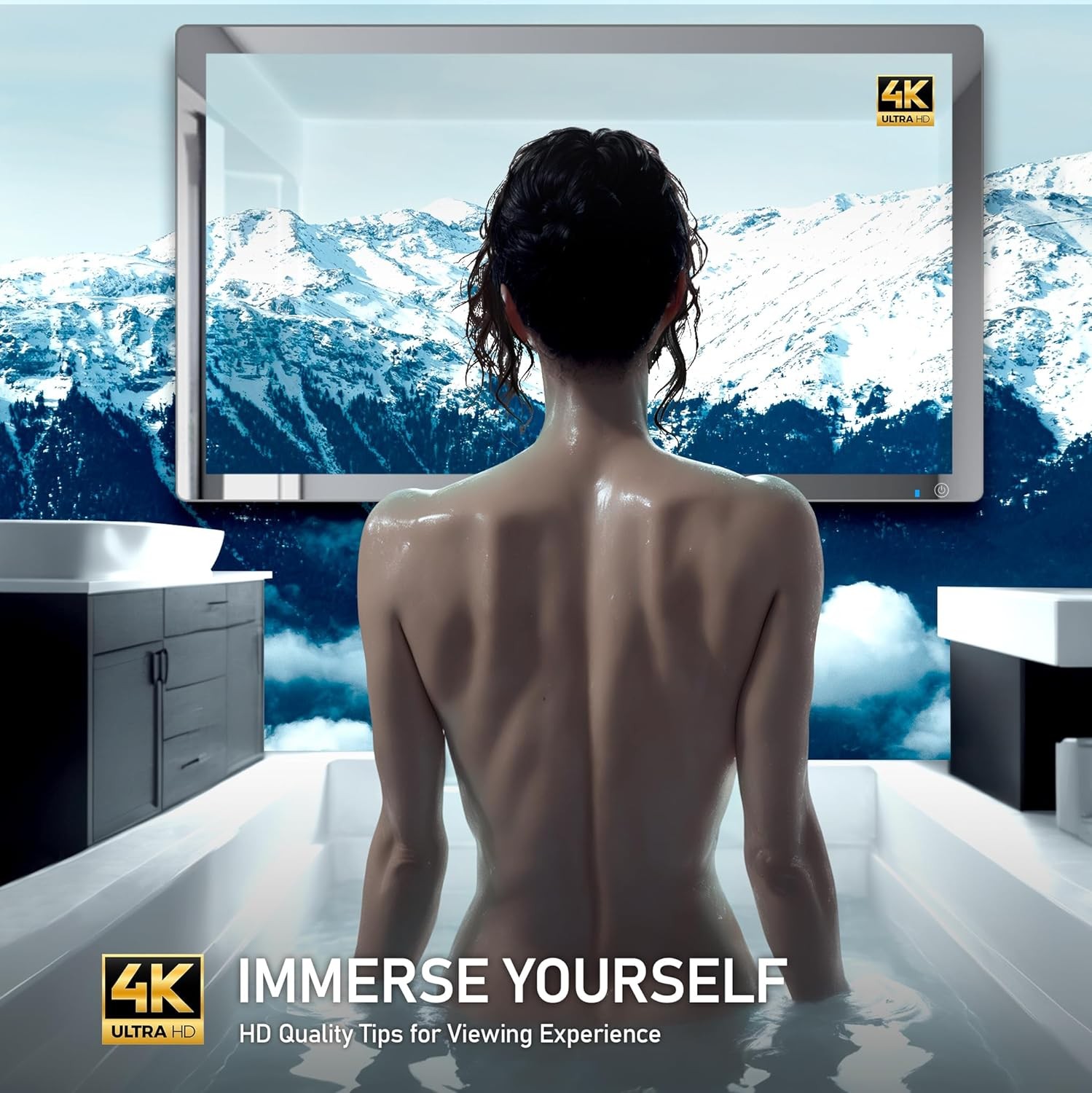 32-inch High-end Smart Bathroom Mirror TV - 4K Ultra HD, IP66 Waterproof, Android TV, Voice Remote Control, Built-in ATSC Tuner, HDMI (ARC), SPDIF, Upgrade Your Bathroom (Silver)
