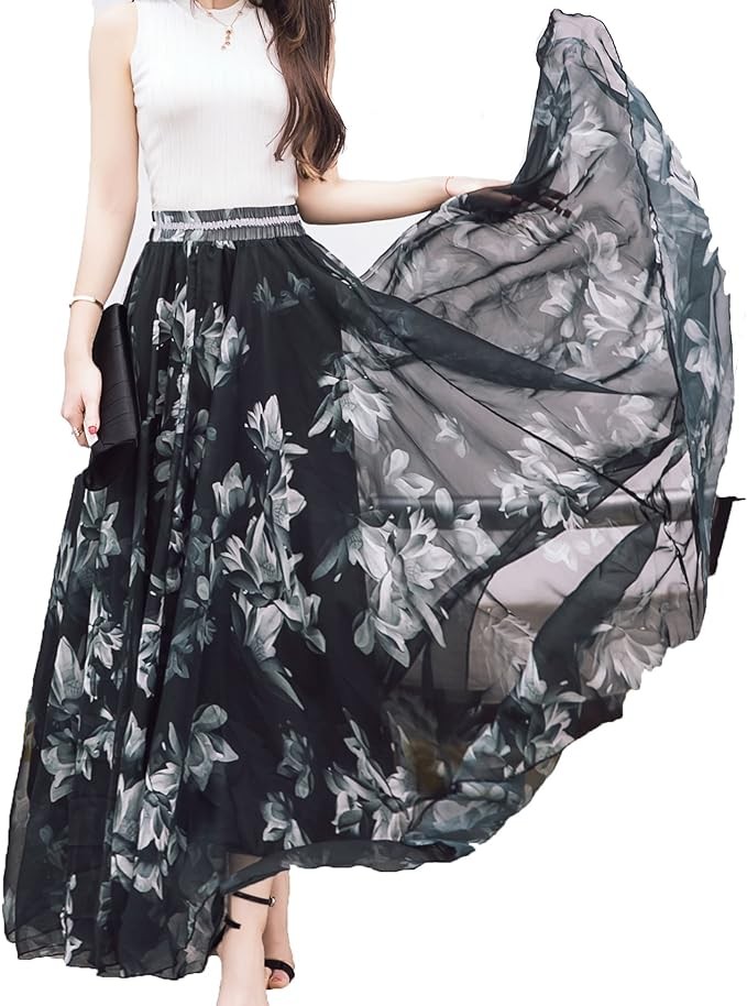 Lightweight chiffon swing summer beach long skirt,It can be worn with tank tops, t-shirts, bikini, sandals, straw hat, flats, heels etc.