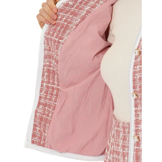 Allegra K Suit Set for Women's 2 Piece Outfits Plaid Tweed Short Blazer Jacket and Skirt Sets