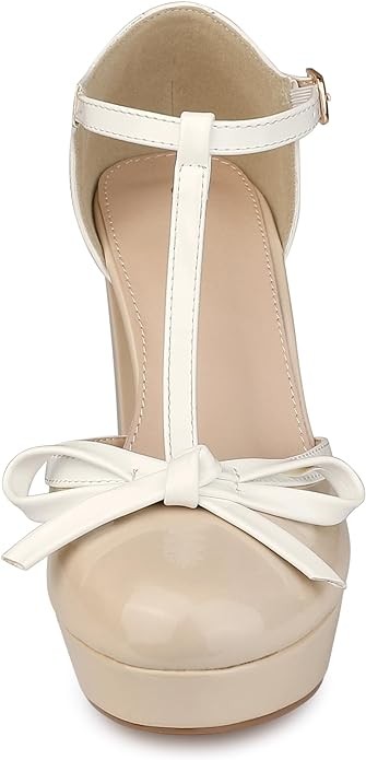 Allegra K Women's Platform Bow T Strap Chunky Heels Pumps