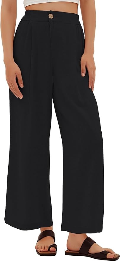 • [Material]-The wide leg pants for women made of cotton linen fabric,lightweight and soft,skin-friendly,breathable,Comfortable to wear for spring,Summer,Fall.