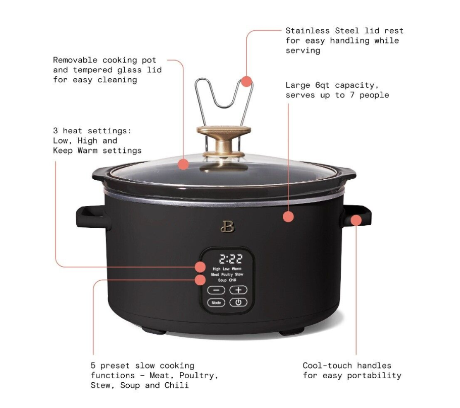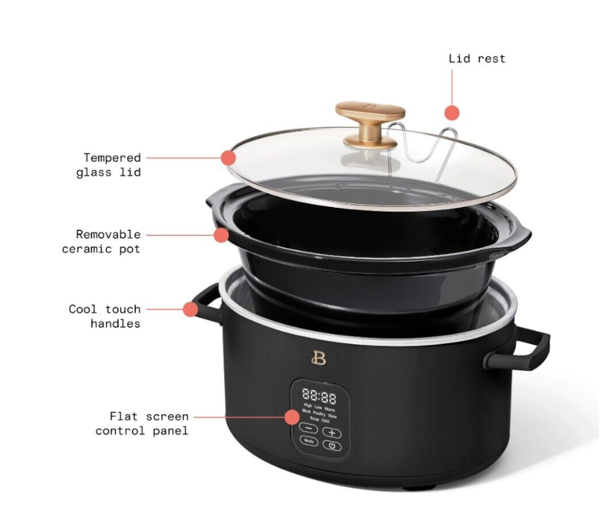 Beautiful 6QT Programmable Slow Cooker, Black Sesame by Drew Barrymore