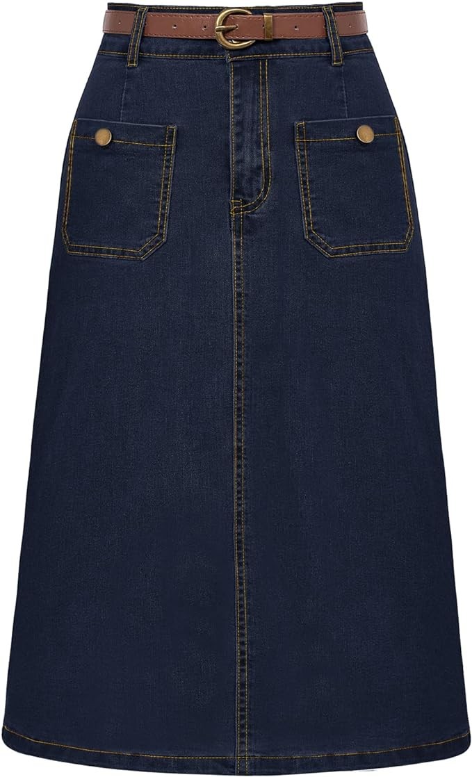 Removable Matched Belt: The denim skirt comes with a matched belt, which is removable, for added versatility in styling