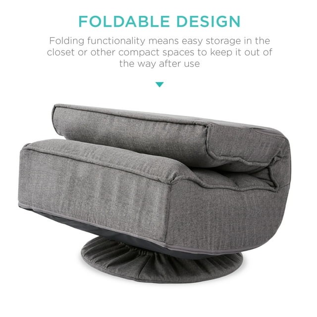 Take a seat in a chair that's both comfortable & fun. Gaming, relaxing, or catching your favorite show - this adjustable chair keeps you comfortable no matter your lounging need! Versatile use makes it perfect for various activities in various locations such as your bedroom, living room, and more. With a 360° swivel function + adjustable backrest, this seat is perfect for yoga, nursing, watching TV, or reading! A sturdy frame and linen fabric with tufted cushioning provide lasting comfort, while floors are kept safe with the removable base/bottom cover. Comfortable cushions are set over a durable steel frame that holds up to 285 lbs. for a durable build, while folding functionality means easy storage in the closet or other compact spaces to keep it out of the way after use. So, look no further for a seat built with a foldable design to suit your needs in any moment.
