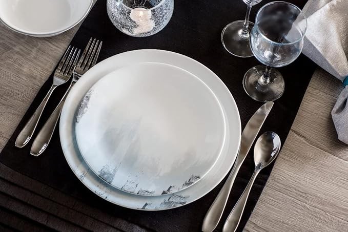 Set includes 4 each: 26cm Dinner Plates, 22cm Luncheon Plates, 18oz cereal Bowls