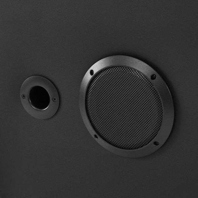 BUILT IN SPEAKERS & BASE I Features 2 speakers mounted onto the headrest and a backrest-mounted subwoofer that creates maximum audio impact and immersion into your favorite games, movies, or music.