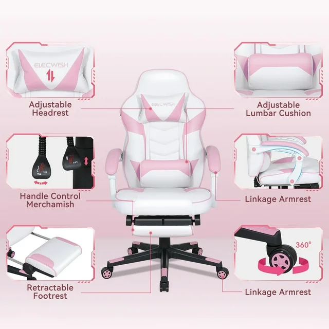 ELECWISH Gaming Chair Ergonomic Office Chair Computer Executive Swivel Desk Seat Recline Swivel Gaming Chair, Pink