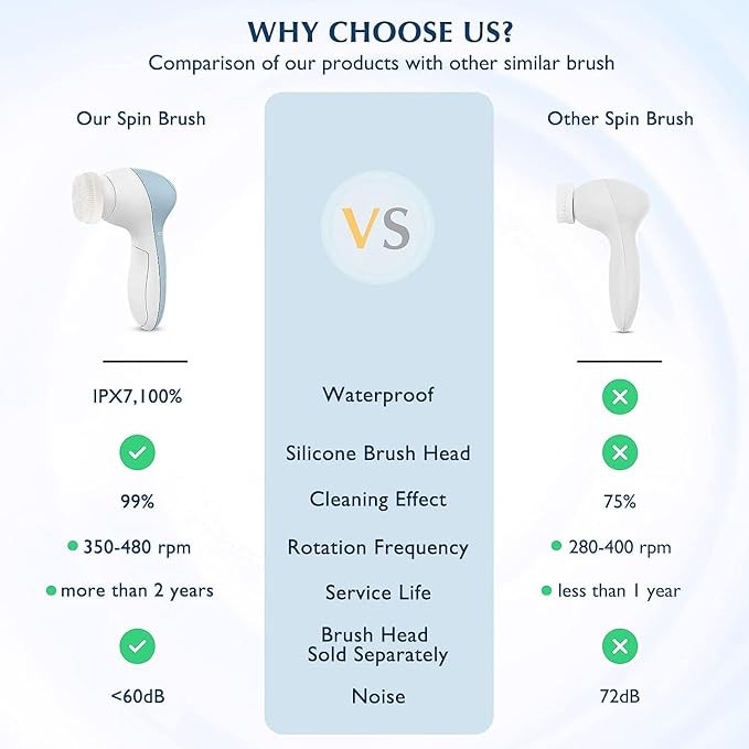 SUPERIOR PERFORMANCE & DURABLE: We are committed to making the quality better through experimental comparison. The motor of our face brush far exceeds the market level, provides twice the power of regular spin brushes. It is equipped with three cleansing bristle brush heads for replacement to ensure hygienic use as well as a long service life to make your skin healthier