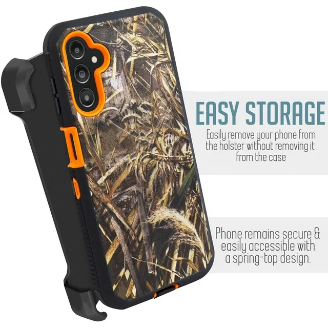 Built-In Screen Protector. Dual-layer shock absorption TPU outer & rugged anti-scratch PC inner cover prevents accidental impacts, bumps, and landing collisions. Raised edge and four corners keep the screen and camera safe. Fit perfectly with Samsung Galaxy A14 5G. 360-Degree rollable belt clip, attached to bag or belt with ease, the best choice to prevent slipping during outdoor sports or travel. Easily converted to a basic kickstand, allows for hand-free watching of videos. Humanized buttons and interface design, avoid frequent disassembly. The port plug keeps the device clean and free of debris. 24 hours professional service team and technical support are ready. Welcome to contact us for any questions.