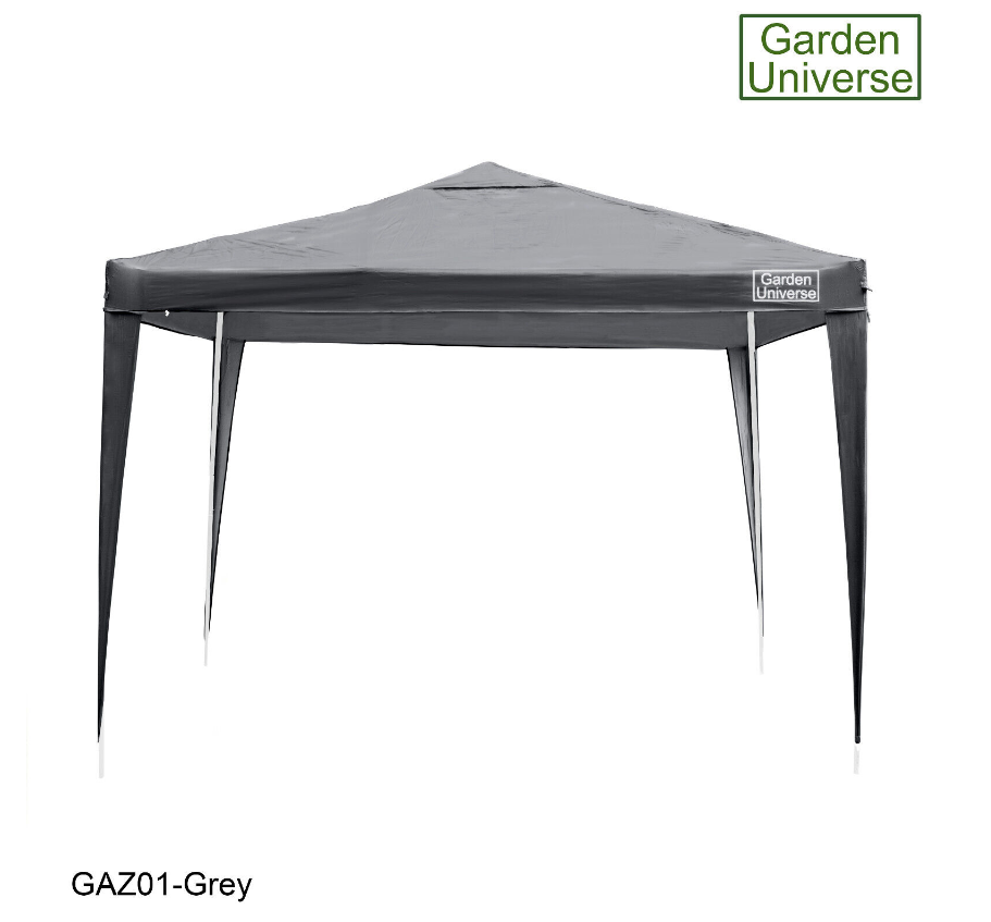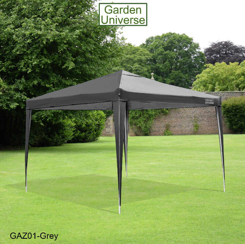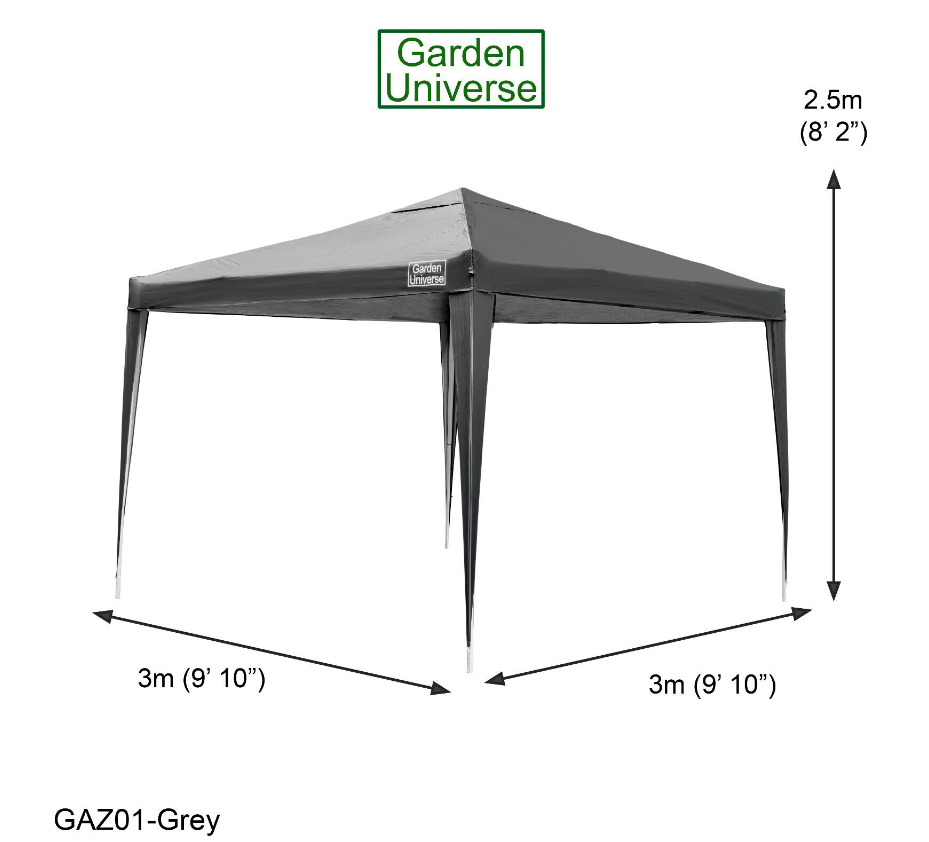 GAZEBO 3 X 3M BY GARDEN UNIVERSE STEEL FRAME MARQUEE CANOPY PARTY TENT GREY
