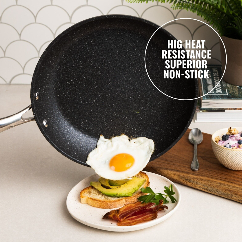 • ULTRA NON-STICK: Granite stone nonstick cooking surface is coated 3x, reinforced with diamonds to deliver the ultimate food release. No oil or butter needed, makes for healthier eating, and provides for hassle free, 1-2-3 cleanup