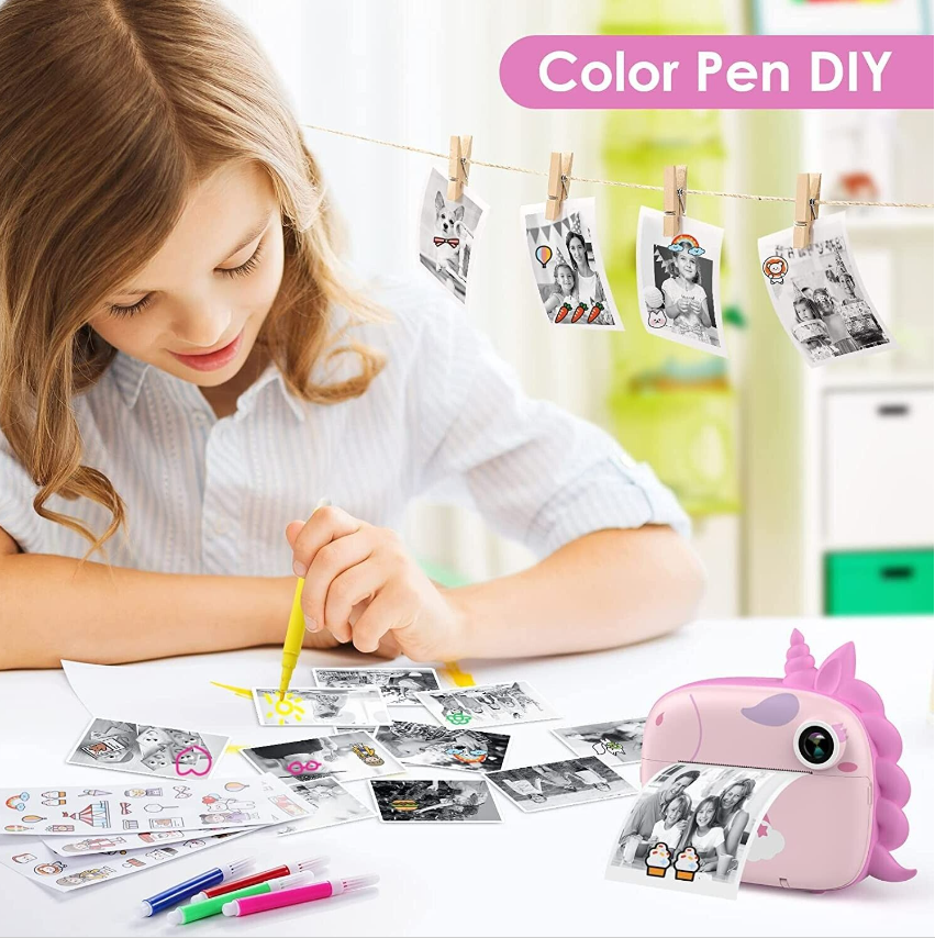 This kids instant camera adopts advanced zero ink technology to print without toner.