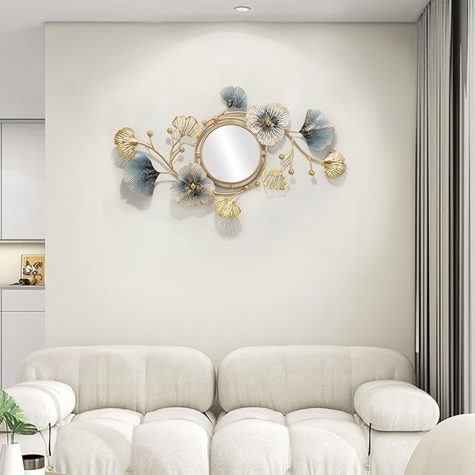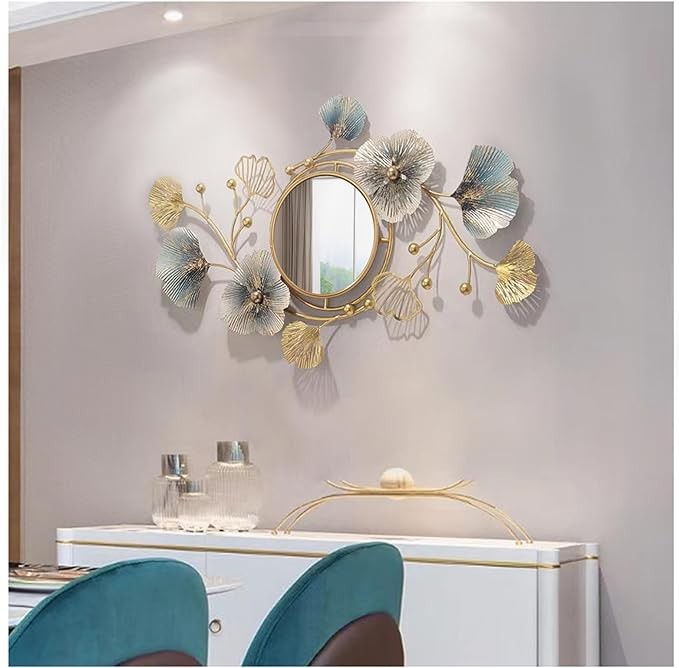 Hoernflk Metal Decorative Wall Mirrors for Living Room,Large Metal Wall Mirrors Ginkgo Leaf Wall Decor Mirror for Entrance Bedroom Living Room,83 * 48cm