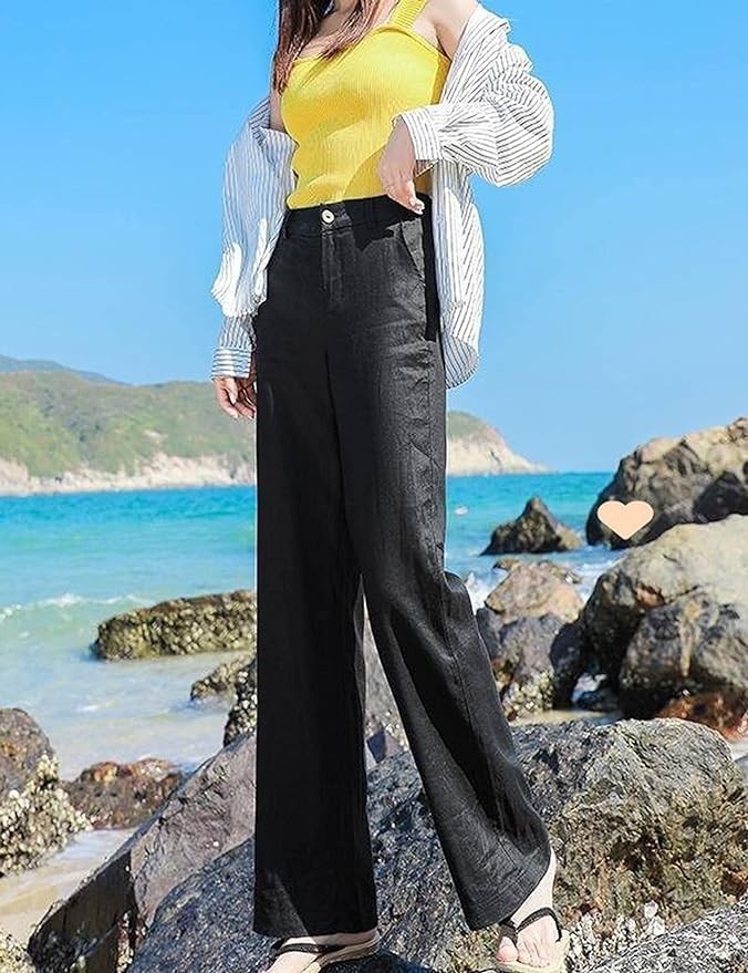 • Flowy pant for the summer, fashion traveling pants, white pants women high waisted, high waisted dress pants for women, fashion comfy solid high waist long pants, beach button down pants