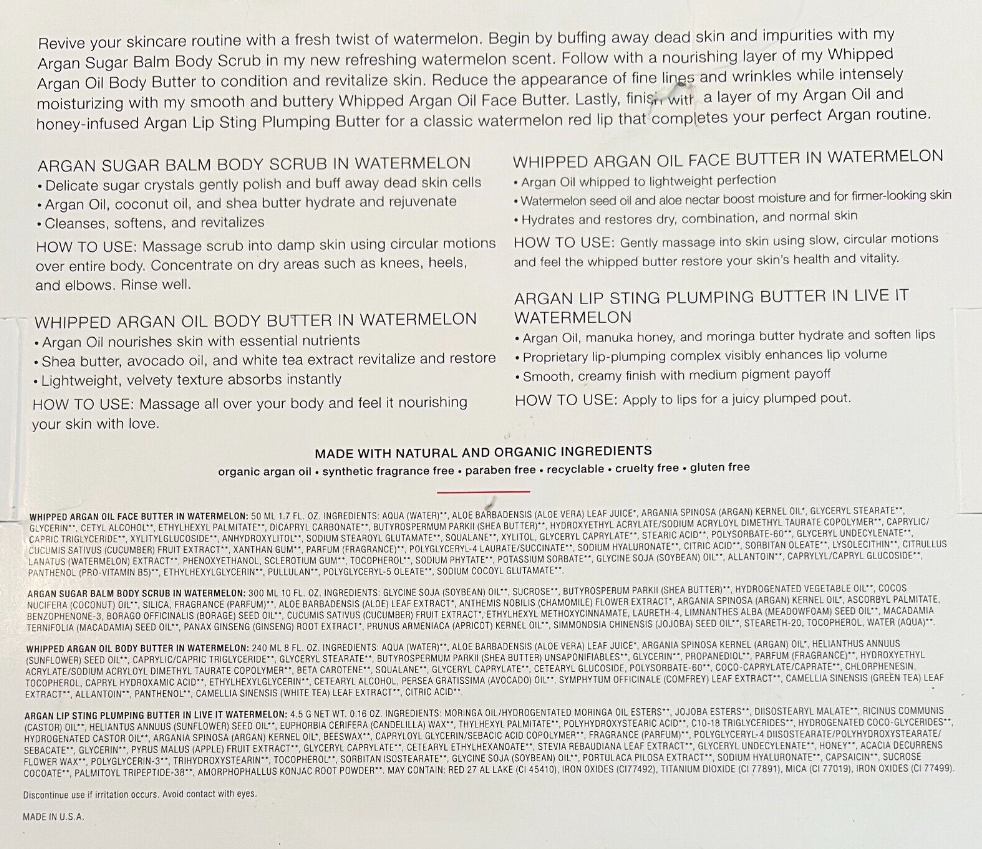 Josie Maran Argan Oil Watermelon Revivers Face And Body Collection Set of 4