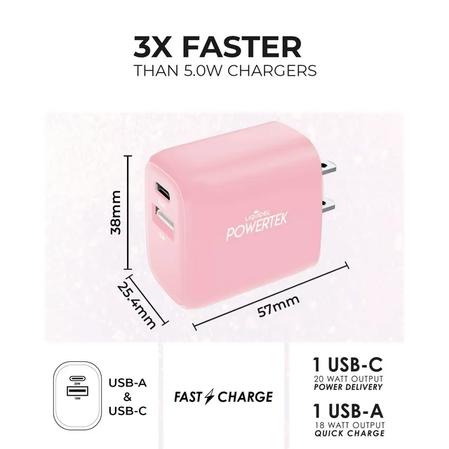 The Liquipel Powertek Dual Port USB A & USB C Wall Block Charger is a versatile and high-quality charging solution for all your devices. With its dual-port design, this charger allows you to charge two devices simultaneously. The USB C port supports fast charging with up to 20W power delivery, while the USB A port delivers up to 18W of power for efficient charging of other devices. This charger has a compact and portable design, with a foldable plug for easy storage and transport. It is universally compatible with a variety of devices, including iPhone, iPad, iWatch, AirPods, Galaxy, Android, Pixel, and USB Type-C devices. In addition to its dual-port design and fast charging capabilities, the charger comes with a USB-C to USB-A cable for convenient charging of your devices. The Liquipel Powertek charger also comes with a 12-month warranty, ensuring customer satisfaction and peace of mind. Overall, the Liquipel Powertek Dual Port USB A & USB C Wall Block Charger is a reliable and efficient charging solution for anyone who needs to charge multiple devices on-the-go. Its fast charging capabilities, compact design, and universal compatibility make it a must-have accessory for anyone who relies on their devices for work or play.