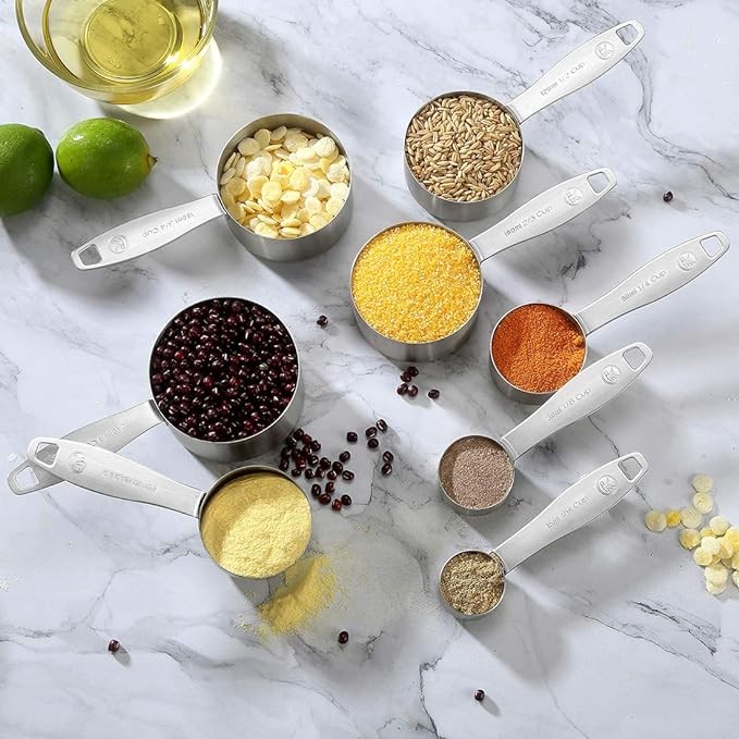 [Beautiful Design] Our measuring spoons and cups set makes a perfect gift for wedding, holiday or housewarming parties. Long handles to allow even clumsy fingers to hold tight. Conveniently nests inside one another design and two rings allowing you to store them in any drawer, cabinet or cupboard.