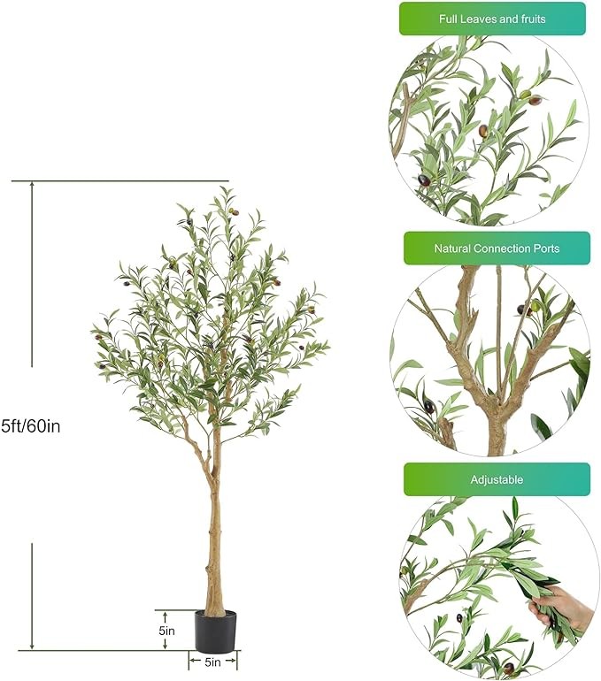 【Realistic Looking】This olive trees artificial indoor outdoor uses very detailed craftsmanship to make the tree looks lifelike. It has silk leaves, full shape, realistic texture, natural connections. It will be a beautiful scenery in your home.