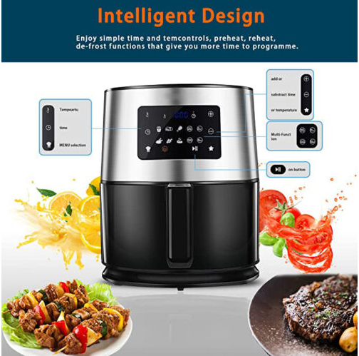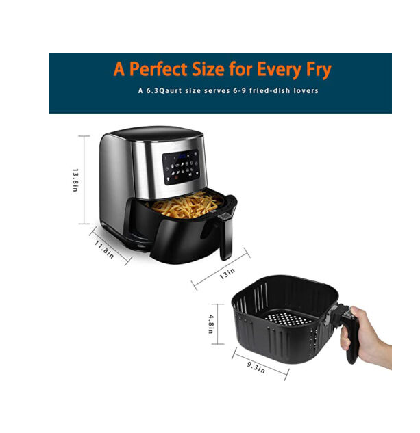 Large Capacity Air Fryer: 6-Qt Air Fryer Square Non-Stick Basket with Filtered Oil Grill. Serve at least 2-7 people in your family. Unique large-capacity design can be used with a variety of cooking styles.