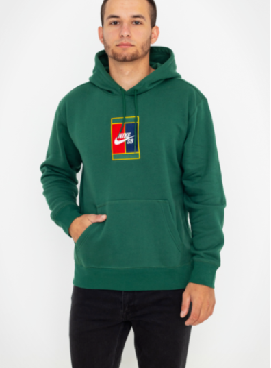 Layer up in the Nike SB Hoodie. This cozy fleece pullover superimposes the Nike SB logo over the colorful Nike Court logo for a skate spin on a heritage design.
