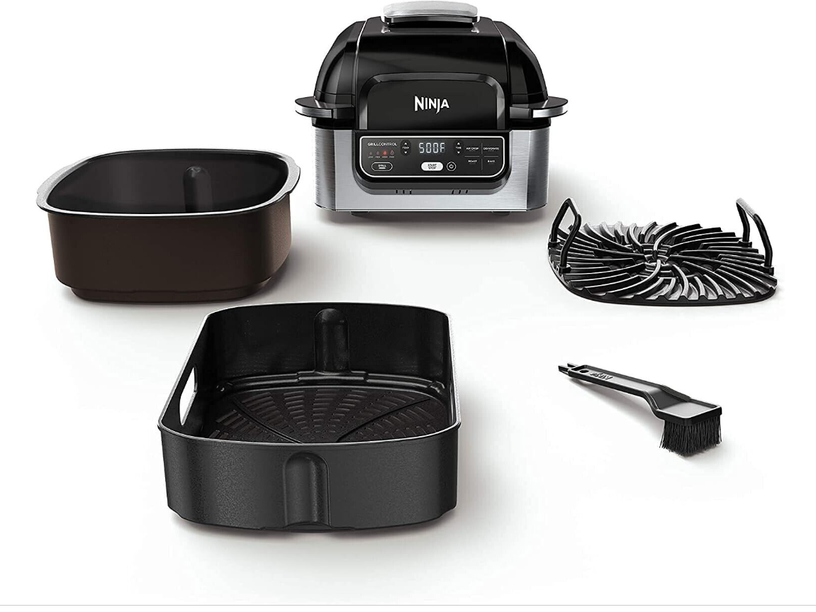 The Ninja Foodi Grill. The grill that sears, sizzles, and air fry crisps. Indoor grill and air fryer