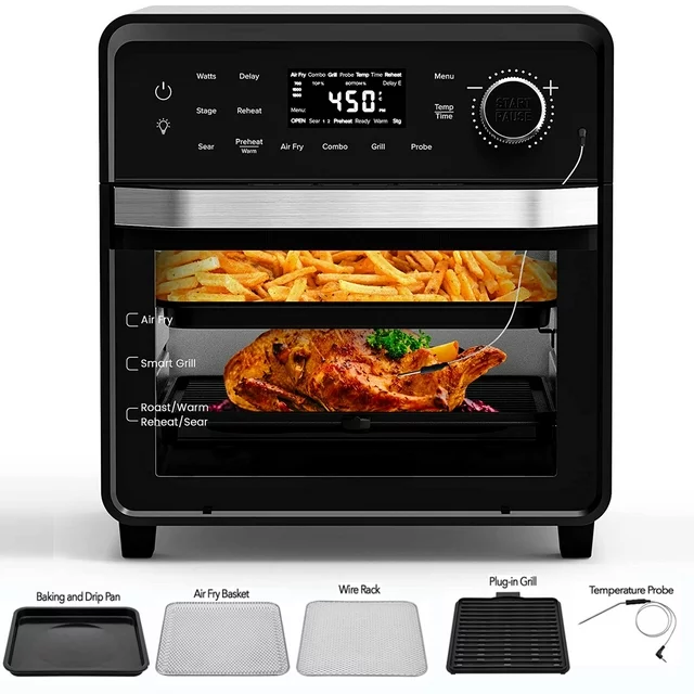 Air Fry & Dehydrate Settings: Air fry French fries and other family favorites; Higher temperatures combined with super convection (maximized air flow) deliver crispy golden air fried foods, dehydrate a wide range of food.