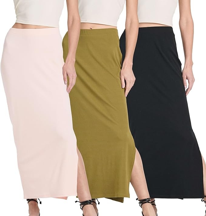 • Versatile Style: This 3-pack of women's ribbed maxi skirts offers versatile options for any occasion. From a sleek pencil silhouette to a flowy column design, you'll find the perfect fit for casual outings or dressy evenings.