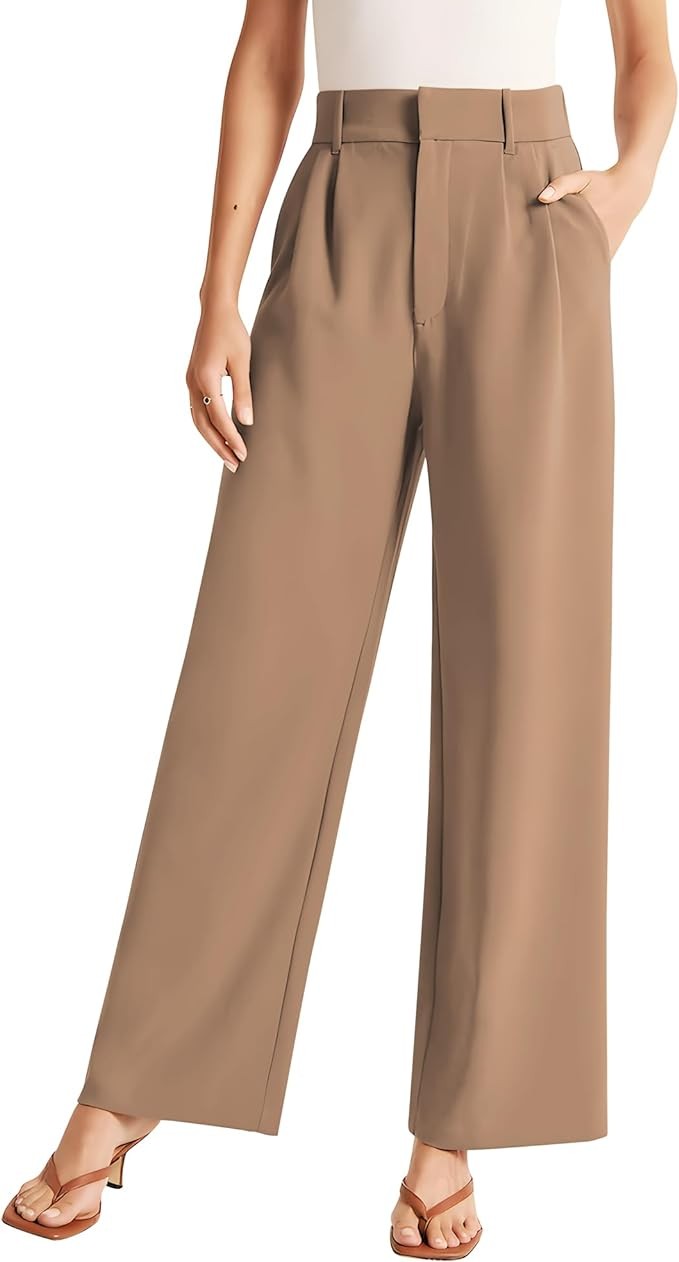 • 【Wide Leg & Elastic Waist】These Casual Pants Feature a Flattering Wide Leg Design and a Pleated Front with Side Slant Pockets. Zip Closure with Hidden Inner Button and Hook Ensures a Secure Fit. The Elastic Waistband in The Back is Designed to Accommodate Different Body Shapes.