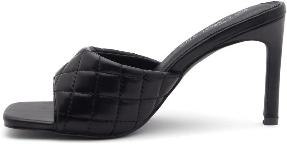 Shoe Land Womens Melrose High Heel Sandals Square Open Toe Quilted Single Band Slip on Heeled Mules