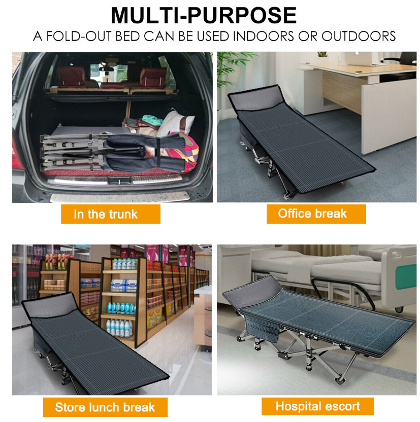 ?【WIDE RANGE OF USES】:ABORON camping cot for adults is perfect for overnight hiking, trekking, hunting, road trip,home relaxing,or office break uses.A great companion to take to the Pool, Lake, RV, Campsite, Patio, Deck, Tent or Cabin.It can be used as a bed for your guest as well.Super convenient!!