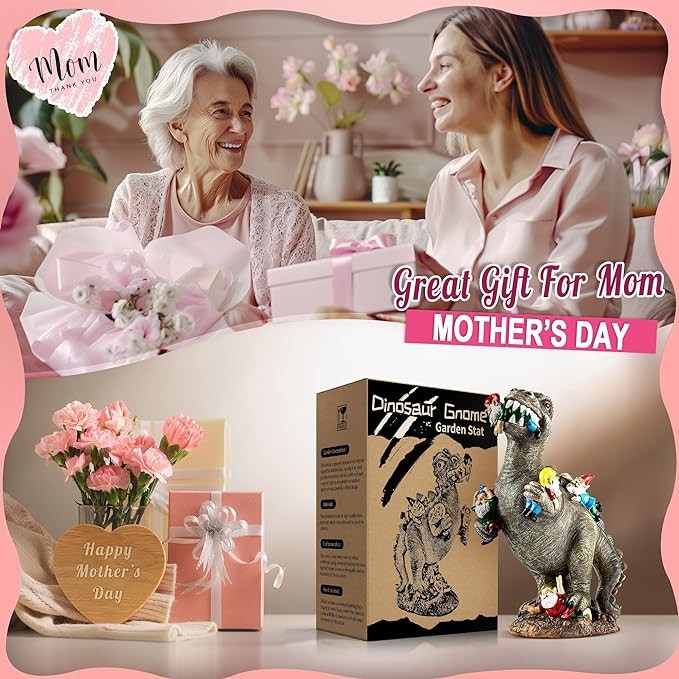 [Adorable Garden Decor]: This Dinosaur Gnomes Statue made up of high-quality resin and has excellent weatherproof performance, is an adorable decoration for garden, lawn, patio and yard which can make your home more lively.