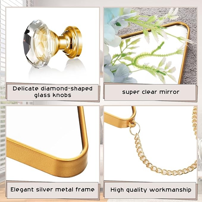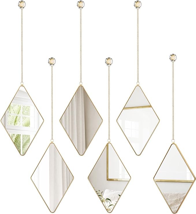 • Set of 6 Wall Mirrors: the package comes with 6 pieces of hanging wall mirrors paired with gold chain and diamond shaped glass handle, equipped with screws and expansion nails as well; Full set can satisfy your home wall decor needs, make your home become elegant