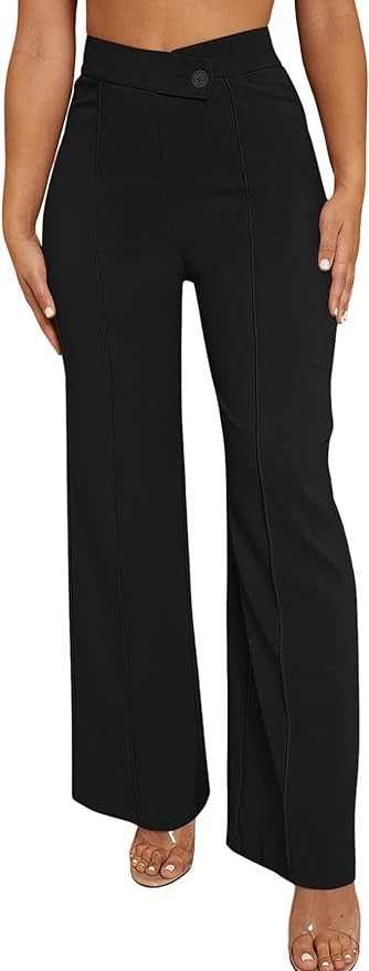 SweatyRocks Women's Overlap Waist Seam Front Palazzo Wide Leg Pants High Waist Long Pant Casual Trousers