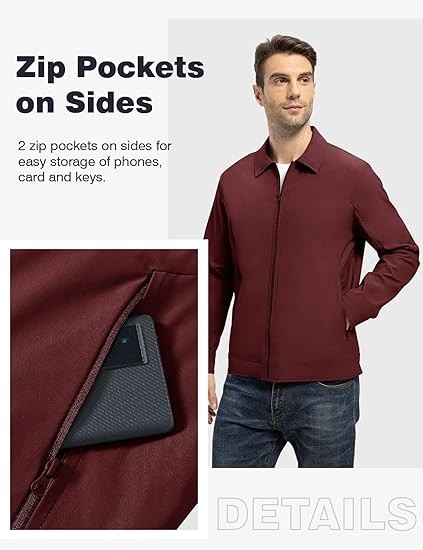 • 【Classic Plaid Lining】This men's full zip lightweight jacket features the classic design of the HARRINGTON on the jacket inside, The integration of quality and fashion.