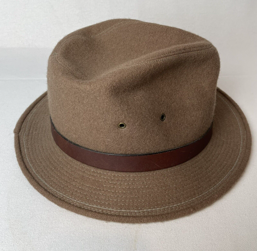 Vintage Backtrails by DOBBS Wool Fedora Safari Hat Tan Sz. LARGE 7¼-7⅜
