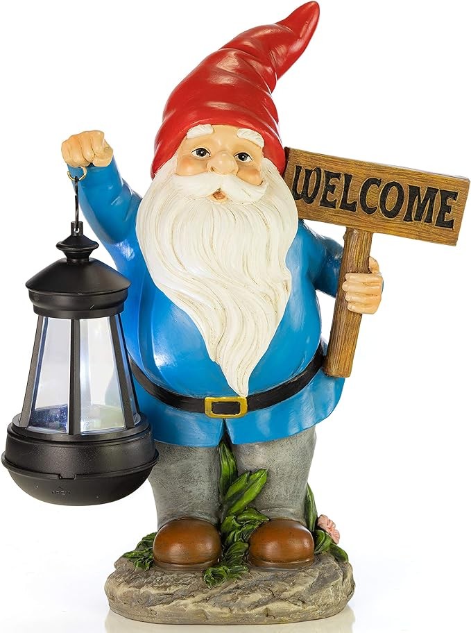 • Hand painted garden decor made of weather resistant material that's easy to install and set up. Upgrade your decorations with these gnome welcome statues.