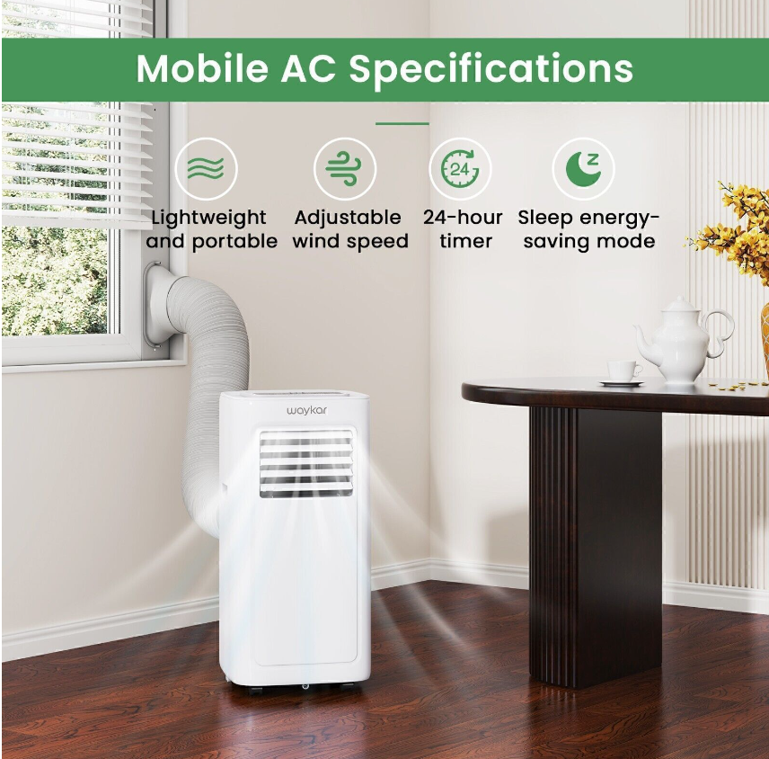 3 in 1 FUNCTIONALITY - The compact and modern air conditioner combines 3 efficient function with cooling, dehumidifier and fan to meet all your cooling & ventilation needs. Waykar portable AC unit will keep air both dry and cool in easy operation, provides the healthy and cool air environment, which is the Best Option to save money and space.