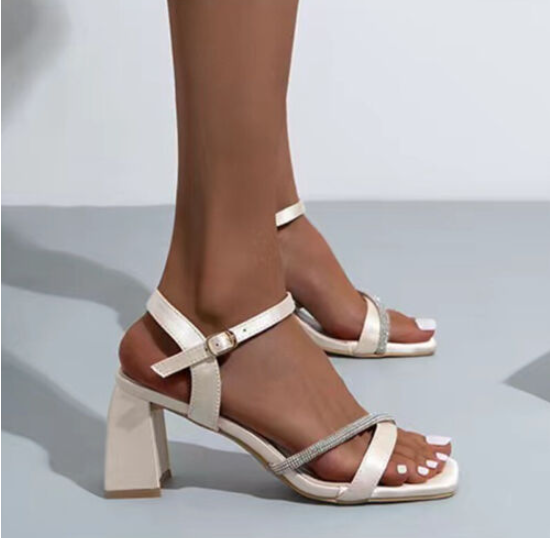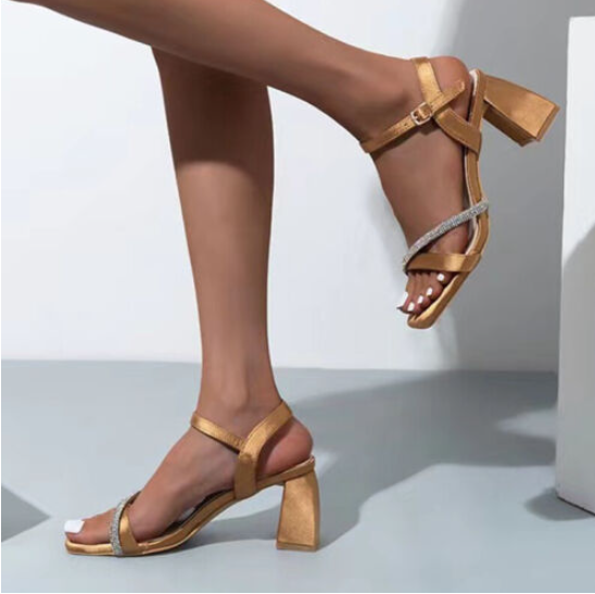 1. Features: Heeled Sandals for Women, Open toe, Cross-strap, Rhinestone on strap, Ankle Strap Buckle, High Block Heel, Chunky Heel.