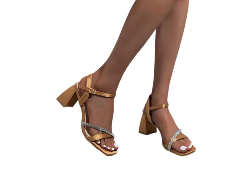 2. Heeled Sandals: Ankle strap chunky block heel, comfortable block heel create slender and sexy legs look.