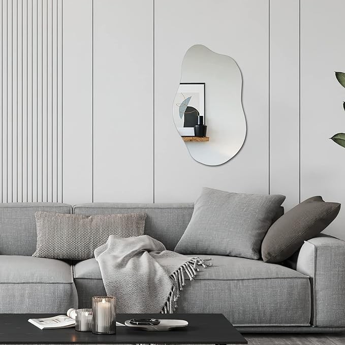 WOOD WORTH Irregular Mirror Wall Decor 19.7 x 33.5 Inch,Frameless Vanity Mirrors for Living Room Bedroom Home Office Visit the WOOD WORTH Store