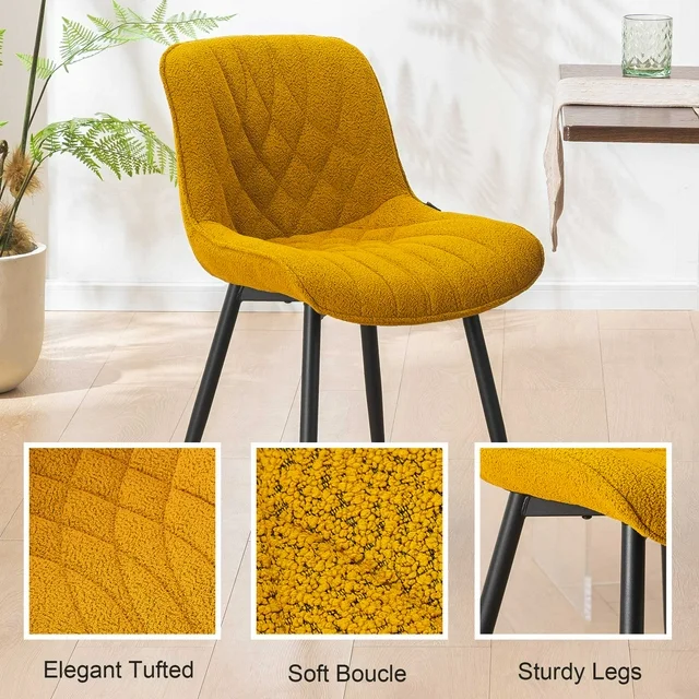 Comfortable--Get ready to experience the comfortable dining chair ever! Our seat, back, and arms are fully loaded with high density foam padding, ensuring you sink into pure comfort. Plus, the touch of our soft boucle dining chair is so amazing, you won't be able to keep your hands off it!