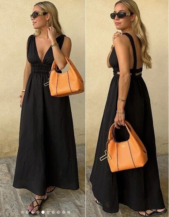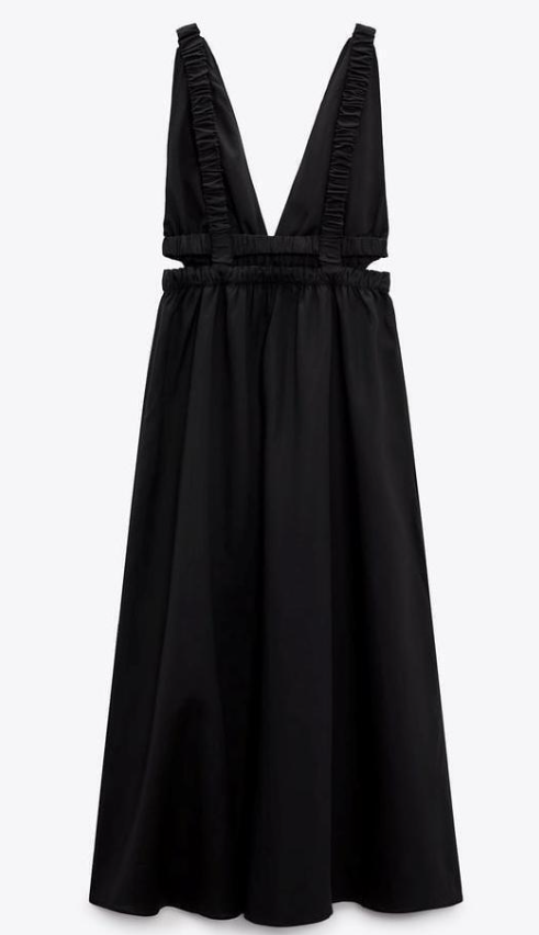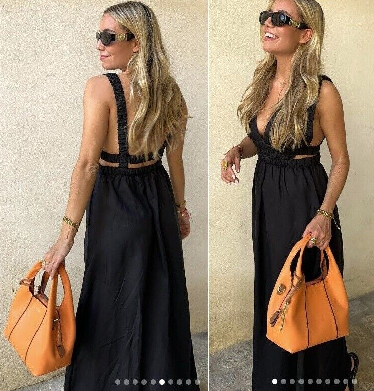 ZARA LIMITED EDITION BLACK CUT OUT LINEN BLEND MIDI DRESS CAGE BACKLESS V-NECK