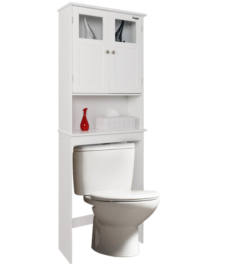 Spacesaver fits over most standard toilets (bottom shelf is 32.87" from ground)